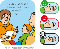 Les personnes qui prennent soin de toi suivent les conseils du pharmacien et lisent la notice du médicament : on y trouve beaucoup d'informations sur le médicament, qui rappellent et complètent ce qu'a dit le pharmacien.